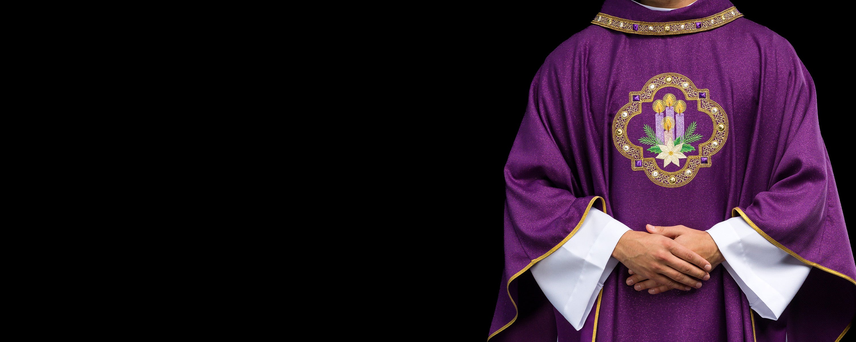 collection of Lenten chasubles in rich purple hues, symbolizing penance and preparation. As you browse through our site, adorned with intricate details and sacred imagery, you'll discover the perfect processional canopy to elevate your liturgical procession. Whether you're a first-time visitor or a returning patron, our online sanctuary welcomes you with open arms.