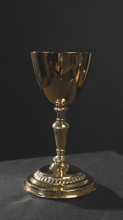 A brass chalice made of gold-plated brass sheet, featuring a classic and elegant design.